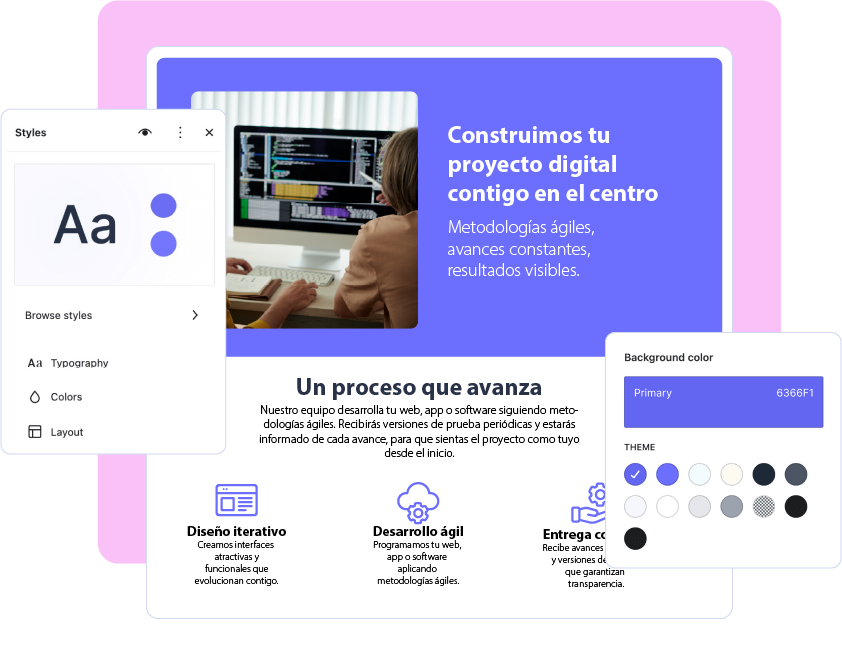 Nuestro equipo desarrolla tu web, app, e-commerce o SaaS siguiendo metodologías ágiles. Te mantenemos informado con avances periódicos y versiones de prueba, para que sientas el proyecto como tuyo desde el principio.