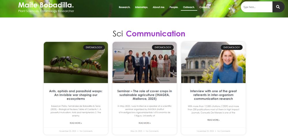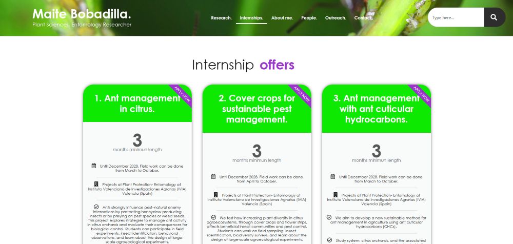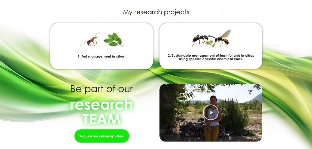 Creamos una web científica que refleja su carrera como investigadora en Entomology and Plant Sciences. Se ha diseñado con el objetivo de conseguir mayor visibilidad para atraer becas de investigación internacionales, internship students y colaboradores.