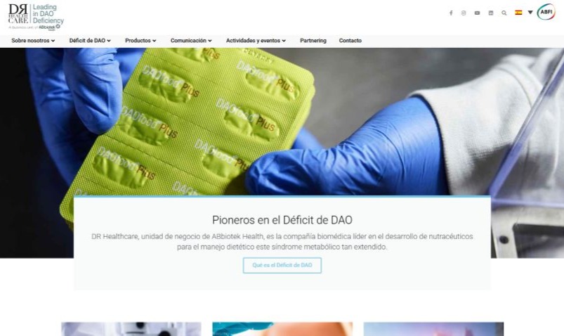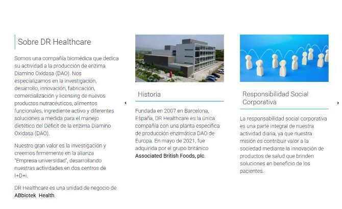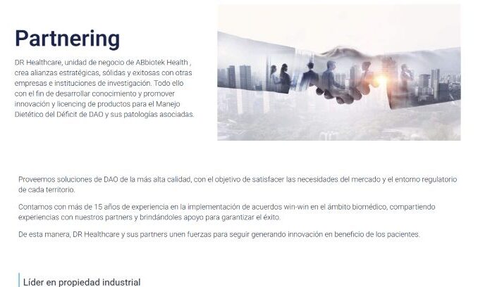 Desarrollamos la web corporativa de DR Healthcare con doble propósito: por un lado posicionarla como líder internacional en nutracéuticos, y por otro, convertir usuarios en clientes a través del funnel de ventas. Con ello logró visibilidad para captar inversores y aumentar sus ventas.